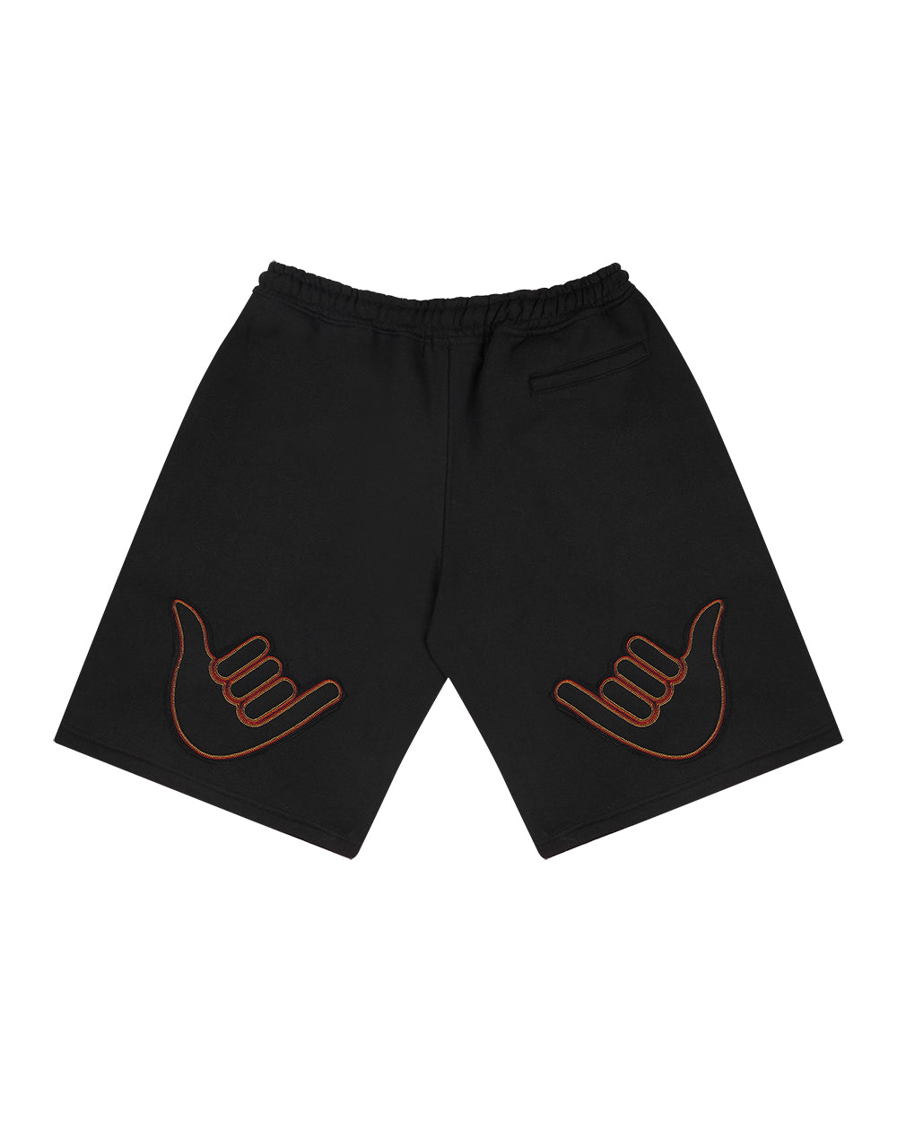 Na parte traseira vemos o encontro da Mad junto ao universo do jogador. Temos as mãos como um dos símbolos da marca e escolhemos dessa vez o hang loose para a colaboração. Aplicações também em bordado.