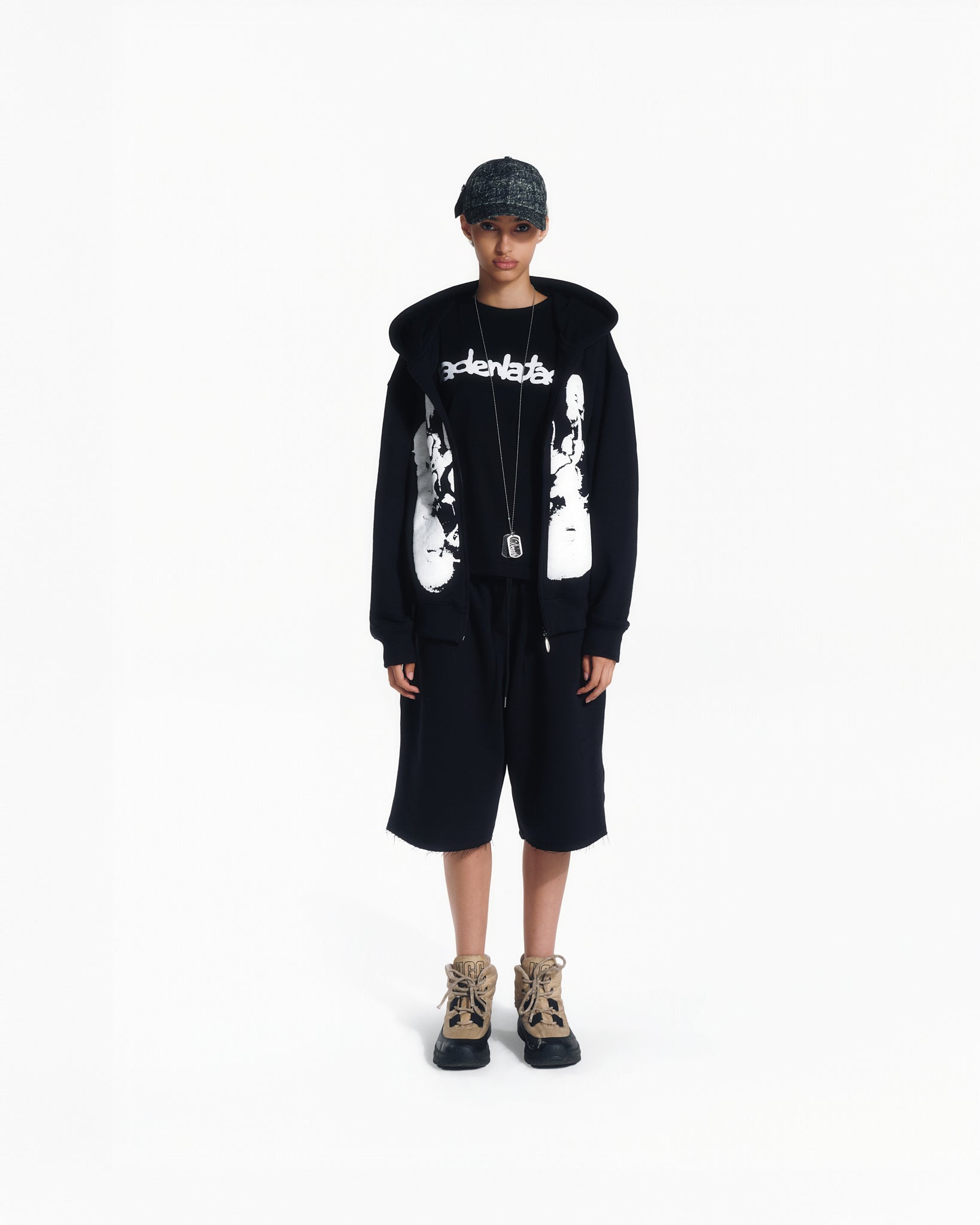 Bermuda moletom confeccionada em malha 100% algodão, dois bolsos laterais invisíveis, dois bolsos traseiros comuns reforçados com rebite, cós de elástico e estampa em Silk-screen.
