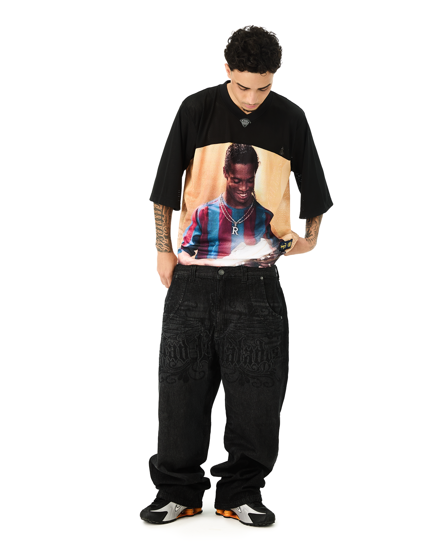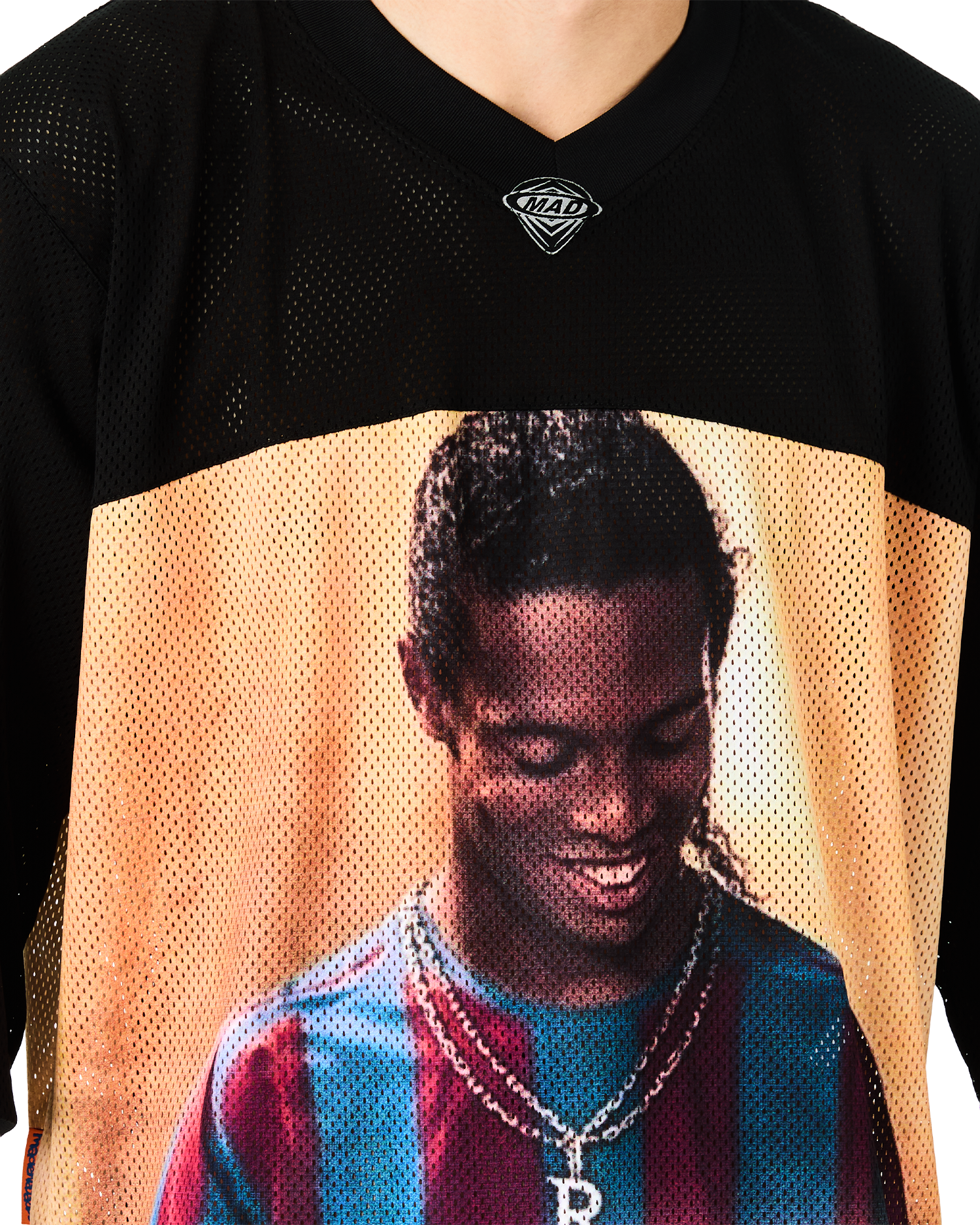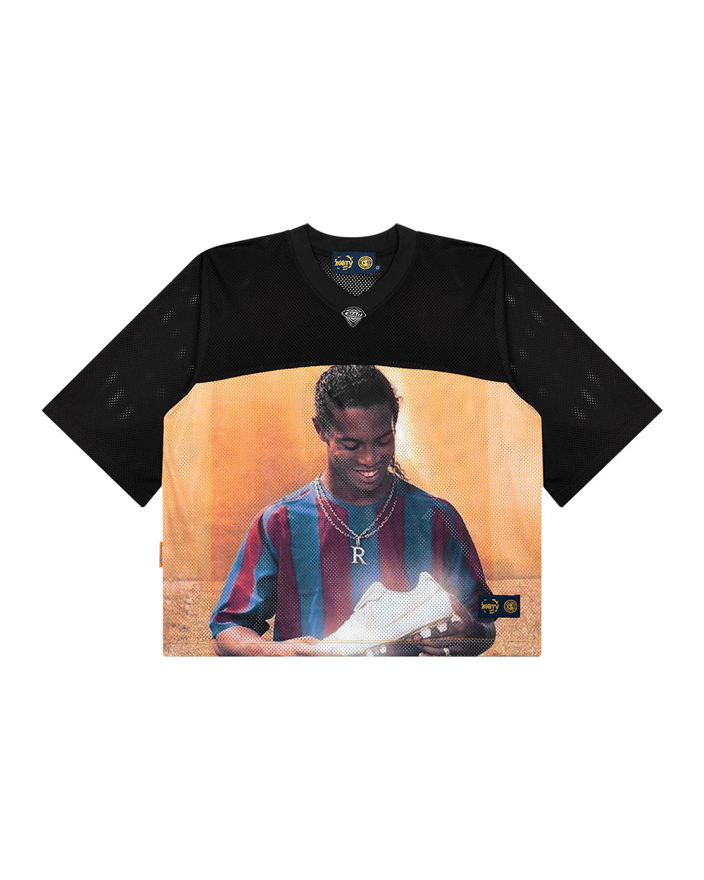 Nessa Jersey modelo futebol americano, com manga estendida, nos transportamos pra sensação que foi ver Ronaldinho tendo suas chuteiras, sonho de muitos que tiveram a oportunidade de ver o estrelato do jogador.