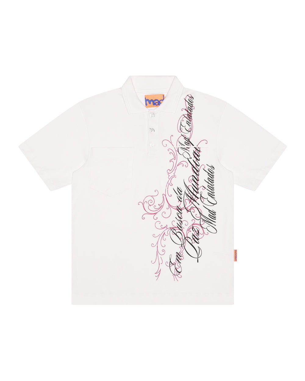 Camiseta Polo manga curta confeccionada em malha 100% algodão, com 3 botões personalizados "M Icon", gola polo e dois bolsos pentágono sendo um deles sobreposto pela estampa em silk-screen.